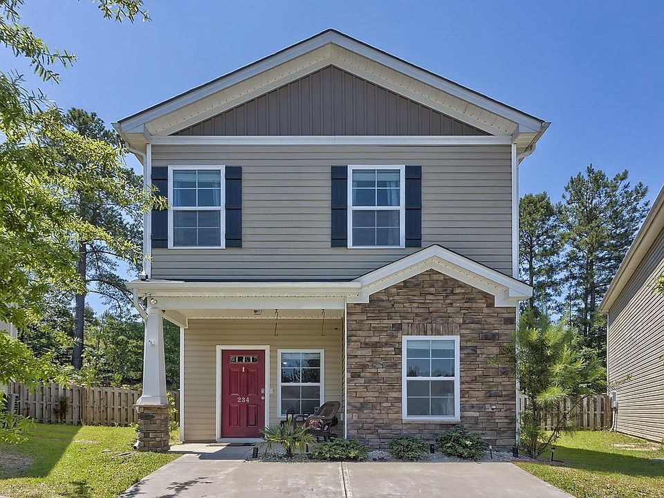 Perfect in every way! Can you believe there are two suites!! Fantastic location close to shopping, restaurants and award winning Lexington One schools! Bright open floor plan. Spacious kitchen with gorgeous granite countertops, stainless steel appliances and large pantry. Separate roomy laundry room on first floor. Sliding glass door opens to "just the right size" backyard that features privacy and a wooden fence with a view of serene woods. Upstairs has neutral gray carpet with two huge master bedrooms. Both bedrooms have large walk in closets, nice size bathrooms with granite countertops. Ample storage closet outside. Neighborhood is quite, clean and friendly!
