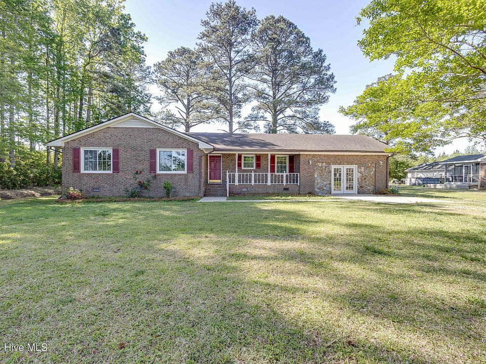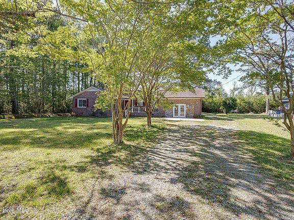 Discover the perfect blend of comfort and style in this beautifully updated one-story brick home just minutes from the charming coastal boating town of Oriental, NC. Featuring a bright and happy open floorplan, the main living area welcomes you with new LVP flooring, updated lighting, and a cozy fireplace with gas logs. The kitchen is a true showstopper, boasting sleek quartz countertops, a stunning waterfall island, and plenty of space for entertaining. Both bathrooms have been tastefully renovated with gorgeous tile work, and the home is equipped with new thermal windows throughout for energy efficiency and year-round comfort. A spacious ground-level family room/den offers additional living space perfect for relaxing or hosting guests. Enjoy grilling on your new back deck overlooking the large back yard. This home is move-in ready with all the upgrades you've been dreaming of! Need workshop space, a man cave or she shed, a play house or separate home office or just additional storage? There's a cute little building in the back that's ready for you to fix-it-up into whatever you need or want!