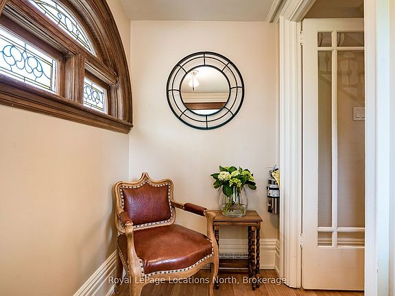 There is something rather enchanting about living a on a tree-lined street in a home with history that is located right in the heart of the downtown Heritage District, where almost anything you need can be found a block or two away. This magnificent, red brick Century Home is steeped in rich history - it was known as "Bodidris" and was once home to a Mayor of Collingwood. It offers ample living space, six large bedroooms, 4+2 bathrooms, a large front porch and all on a full town lot just one block away from the shops and restaurants of downtown Collingwood's main street. You'll find gorgeous woodwork detailing and leaded/stained glass windows throughout, with some thoughtful updates and renovations that have been completed (Heritage Award Recipient 2015), yet this home still provides the opportunity for a new owner with style to add your touch and turn it into your own stunning showpiece. Primary Bedroom has fireplace, walk-in closet and ensuite bath with heated floors. Sauna in basement bathroom (bathroom not included in total as max 5 allowed). Heritage Act designation entitles homeowner to tax rebates and maintenance preservation programs. This stunner is exactly where you want to be to take full advantage of all that the Collingwood lifestyle has to offer. Walk to local shops, arts and cultural events, waterfront, trails and schools, and the ski hills are a just a10-minute drive away. Floor plans attached. Make sure to view the video tour to truly get a feel for the magic of 234 Pine St!