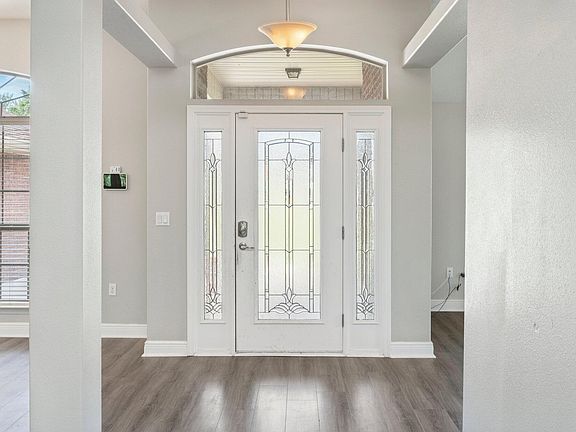 South Crestview, No Carpet and 10K towards closing costs! This 4-bedroom 3-bath home includes an additional flex room/office and 10 ft ceilings. There is brand new LVP flooring throughout, and the entire interior of this home has been freshly repainted. Outside has additional concrete pads providing ample patio space and oversized parking. The backyard has newly installed sod, due to miniature horses aka Great Danes. The home is also equipped with a security system. The master bedroom opens to a covered back porch with ceiling fans. The master bathroom includes his and her closets, his and her vanities, garden tub and separate shower. The kitchen boasts GE stainless steel electric appliances. The 10 x 7 storage shed and sprinkler system conveys as is. Refrigerator in garage does not convey. Measurements to be verified by Buyer.