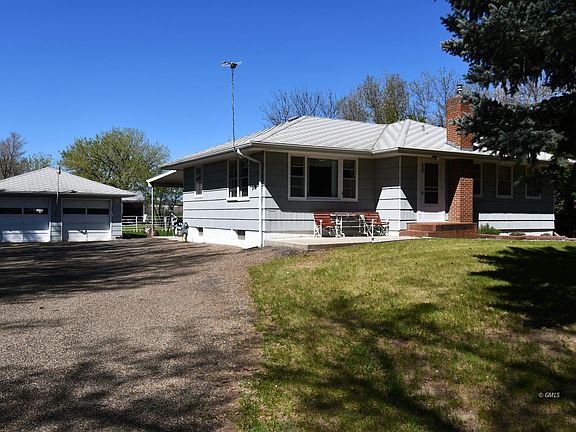 Nature's best is beautifully displayed throughout this 2 Acre property located on River Road in Glendive, MT. This property has mature towering trees surrounding the grounds, scented lilac bushes and green plush lawn being watered by irrigation water. There is a detached double car garage a shed 18 x 12 with garage door. Attached to this home, is a 272 sq ft carport. Check out the 30 x 60 Pole barn!!! Enter through the beautiful landscaped front yard to the front door and be captivated by the warm sense of natural light, reflecting off the original wood floors. The main level of this home you have your kitchen, dining area, living with two bedrooms and one full bath. Take a step down from the kitchen, into your very own 408 sq ft enclosed sun/all season room. Downstairs, is your laundry room, and a bath, a living area. There are 3 rooms that would be considered bedrooms, if they each had a closet. The road easement separates the two acres. Here is the beauty of this opportunity. The sellers are willing to sell both acres for $410,000. If you are just interested in the home the seller are selling for $340,000. The other acre across the road, will be s