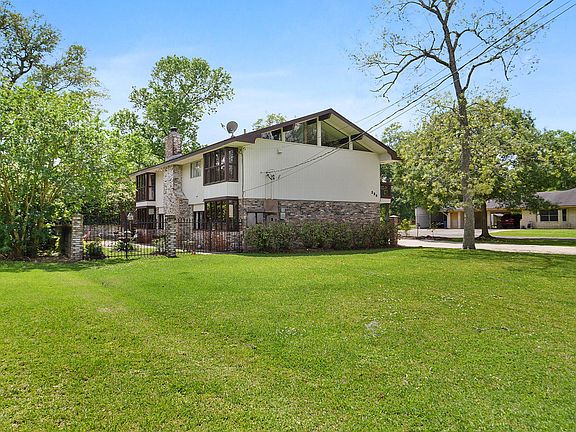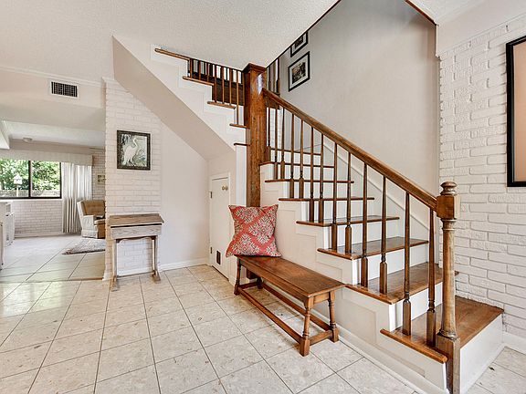 Hello, contemporary with a twist of mid-century modern! We've all been waiting for you.The layout is great - endless windows for natural light to filter throughout the home & an open floor plan that offers options for various living area ''zones.'' Fireplace in LR, spacious dining room with a fun, custom mural that adds whimsical character! Spacious kitchen with built in bench seating is nostalgic and comfortable. Private courtyard patio accessed from the living room is nice visual backdrop through all of the windows. Office w/ half bath downstairs and all bdrms plus utility room are upstairs - there is a secondary living area upstairs and a large bonus room that owner uses as a 4th bedroom that also has access to the courtyard! Did NOT flood in August 2016 historic flood. Roof approx.5yr!