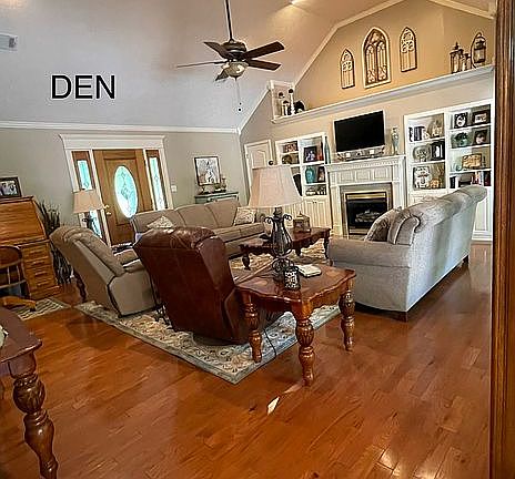 House features beautifully maintained landscaping with lots of space including a stocked pond with a pier on 8 acres. Updated Kitchen features *Quartz countertops *Stainless steel built-in appliances…oven, ceramic cooktop, dishwasher, compactor *Breakfast nook *Vaulted ceiling in large 20x20 den with built-in cabinets with shelves. *Gas fireplace *3 bdrms, 2 full updated baths. *Formal dining *Lots of windows in back for natural light and outdoor view *Hardwood floors in living and dining rooms. Also, ceramic tile, vinyl planks, carpet. *Master bath has his/her vanities, extra large tub with air jets, separate shower. Gas heater in wall. *Extra large 2 car garage with small storage room. *Large attic space. *Outside has front and back porches, large deck with built-in covered benches, large patio, gazebo, and front and back sidewalks. *Also, large 24x36 shop and 20x20 metal garage/shed. Shown by owner by appointment only. Call or text (662) 255-6968 or (662) 566-7576
