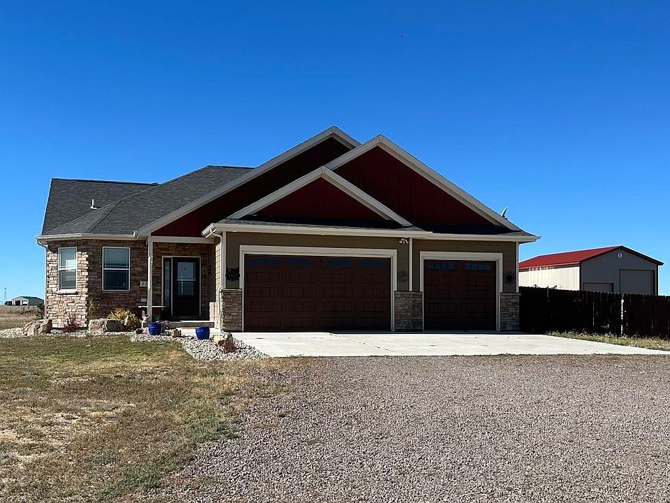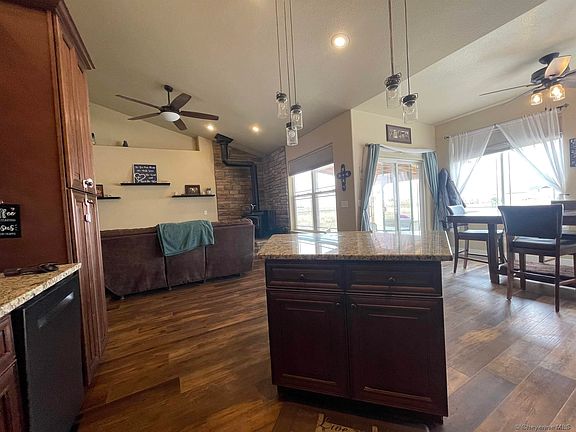 Step inside this incredible horse property home that features 5 beds 3 baths 8+ acres in the county. Beautifully vaulted family room with a cozy wood burning stove, open to the dinning, kitchen combo. Granite counters and a chef's gas stove/oven, upgraded cabinets & island breakfast bar. Huge master suite with a spacious double shower, double vanity, walk in closet. 4 additional bedrooms, wet bar and tons of storage! Landscaping, fully fenced, new 30x40 shop/outbuilding that's insulated with 110 and 2 220 outlets for your campers, 14 foot door to park your camper in. A barn/loafing shed and tack room w/ electric and water. Buy with confidence with a 1 year home warranty included, Easy access to Hwy 85, I-25 and I-80. Own your piece of Wyoming today! Schedule your showing today!