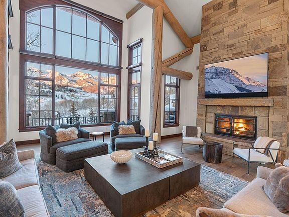 Located on one of the best lots in Mountain Village, this recently remodeled family compound offers luxury living at its finest. The extensive renovation includes a brand-new kitchen, fully updated bathrooms, a state-of-the-art golf simulator, and much more. The property features 8 spacious bedroom suites, 8 full bathrooms, 2 half bathrooms, and a separate guest house, providing ample space for both family and guests. Ski-in/ski-out access is right at your doorstep, with the home located directly on The Galloping Goose ski run and the 3rd fairway of the Telluride Golf Course. Enjoy dramatic San Sophia views, excellent solar exposure, and expansive outdoor living spaces. The property is bordered by open space on two sides, offering the perfect balance of privacy and access.