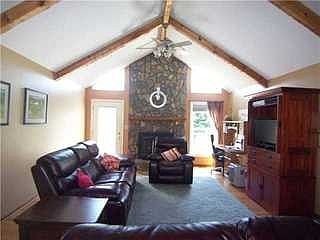 This home is a must see! Great room with exposed beams, vaulted ceiling & rock fireplace. Slate floor in foyer. Eat-in kitchen with bay window and bar. Large bedrooms with walk-in closets. Garden tub, double sinks, additional vanity and separate shower in huge master bath. Full unfinished basement heated and cooled, studded for bedroom and bath. 2 car garage with closet for storage. Covered front porch and a big, two level deck on back of house. Exterior is cedar and stone. Large fenced backyard and located across from community pool.