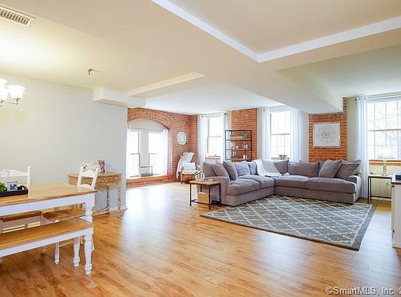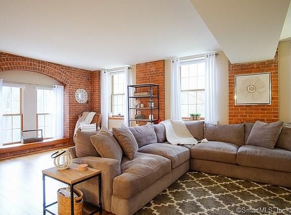 Absolutely stunning 2 BR 2 Bath condo in Historic Parker House now on the market! This brightly lit end unit is a photographers dream...see the photos for yourself! Imagine coming home to an open floor plan and expansive living room with features like arched windows, coffered ceilings, sills so deep you can sit in them, gleaming hardwood floors and touches of exposed brick...it really is straight out of a catalog! The kitchen is gorgeous and fully updated with high end finishes including specially honed granite, hand made tiles, custom maple cabinetry and SS appliances. Bedrooms are large and sunny with unique features like built in cabinetry, dark wood blinds, brick walls and hardwood floors. Updated bathrooms include designer touches like shiplap, custom solid surface counters and oiled bronze fixtures. The Master Bedroom provides an en suite bathroom with walk in shower and ample storage. Washer/dryer hookups are conveniently located in the hall. This unit exemplifies easy living because the owner has thought of everything! Meditate or fall asleep listening to the sound of the waterfall of Pamecha Creek which borders this unit in a deep green ravine. Enjoy the privacy and change of seasons offered by the wall of trees that parallel the unit. Calming colors, large sunny rooms and unique architectural details make this special unit an Urban oasis for the next lucky owner! Heat pump, water heater and new AC condenser (installed June 2018) are fueled by natural gas so mechanicals are very efficient and utility costs historically low (owner can provide details). Plus the Parker House (National Register Historic Properties) provides a fantastic location w/easy access to Route 9 and a short walk to Wesleyan, Middlesex Hospital and Downtown Middletown. This unit includes dedicated conditioned storage on the same level and 2 parking spaces...1 assigned spot near the entry and 1 general nearby. Pets allowed are: 1 dog OR 1 one dog and 1 cat OR 2 cats.