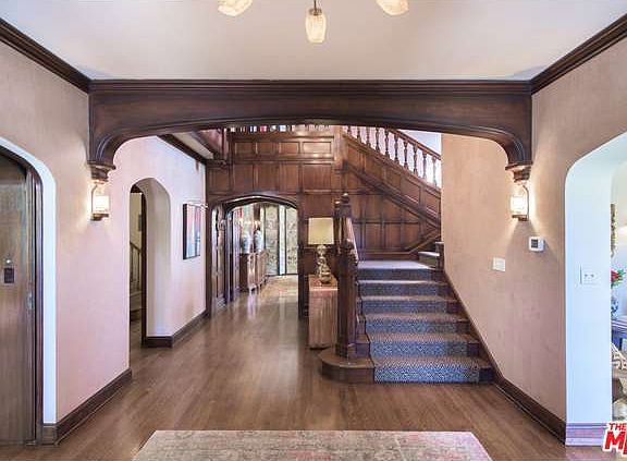 Magnificent English Home located on one of the most prestigious streets in Prime Hancock Park. Classic elegance on display throughout with masterful restoration and great attention to original glamour and detail! Traditional entry with sweeping staircase, step down living room with fireplace overlooking a covered patio and expansive yard and pool. Paneled den or library is located off the entry; formal dining room opening onto yard; also a junior dining area/breakfast room, and full butler's pantry leads to kitchen; separate full laundry room, maid's room and bath complete the main level. Three Family Bedrooms upstairs plus Mstr Suite with large walk-in closet and updated marble bathroom with separate stall shower and free-standing tub. Enormous Family Room/Screening Room downstairs - perfect for home entertainment. Detached one bedroom gst hse is located above the 4-car garage in addition to a pool house/gym with ~ bath. Truly an iconic home in the historical neighborhood of Hancock Park.