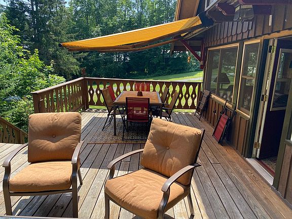 Indian Lake Chalet- located on Lakeshore Drive featuring a unique turn key recently renovated year round home, 3 bedrooms, 1 1/2 baths, modern kitchen, all season enclosed sleeping porch, full length deck with views of Indian Lake, whole house generator offered with all furnishings. Deeded lake and docking rights.