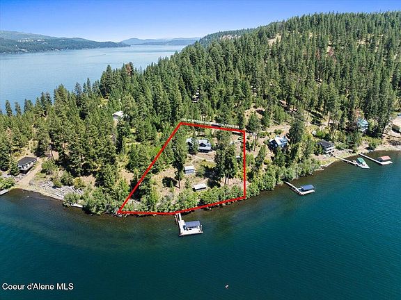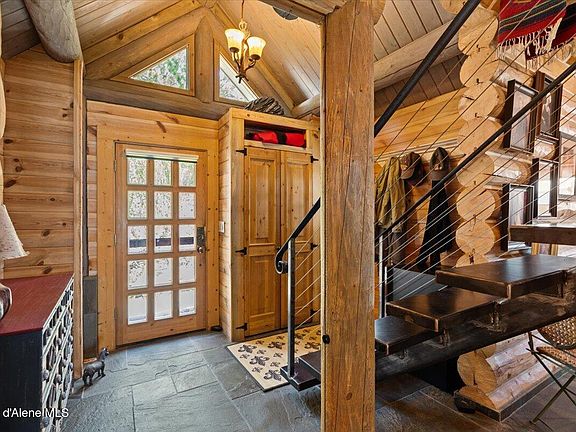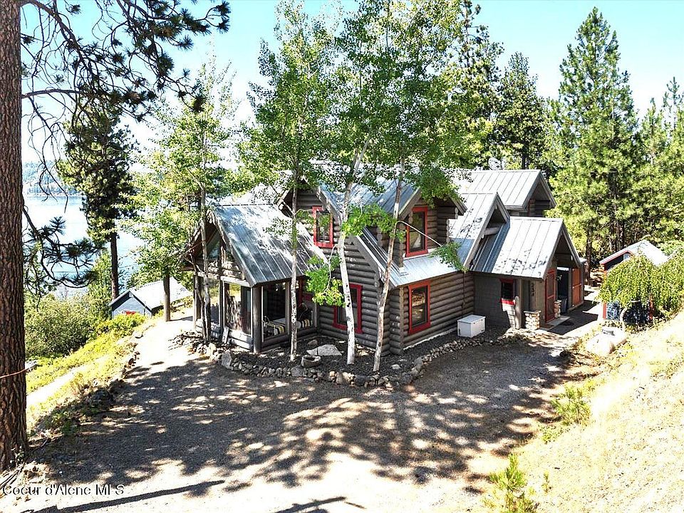A remarkable waterfront log home on the picturesque shores of Lake Coeur d'Alene! This stunning residence features 3 bedrooms and 2 bathrooms, encompassing a generous 1,844 square feet of comfortable living space. Step inside to find enchanting blue-stone flooring warmed by radiant heat, complemented by a wood fireplace that invites you to unwind. The expansive great room seamlessly connects to a delightful sunroom, perfect for soaking in the natural light and serene lake views. Farm style kitchen includes DCS gas stove, dishwasher, and granite counters. Upstairs, you'll appreciate the soundproof cork flooring, ensuring a peaceful retreat. The home features covered decks that provide an easy pathway to an insulated and fire-retardant bunkhouse. Additional amenities include a generator, woodshed equipped with air conditioning and 220-amp service, along with a beach shed for all your outdoor toys, 234' of pristine waterfront and private dock.
