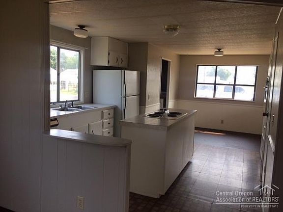 MF Home In Prairie City w/Mt Views! Great starter home or rental investment, 1980 Broadmore, bright cheery kitchen, dining area, 1008 sq ft, 2 bedroom, 1 bath w/double vanity, utility area w/washer & dryer, forced air electric heat, swamp cooler, nice large covered deck, membrane roof, 20 x 20 shop w/lean to, fenced, room for an RV. $47,000 #962