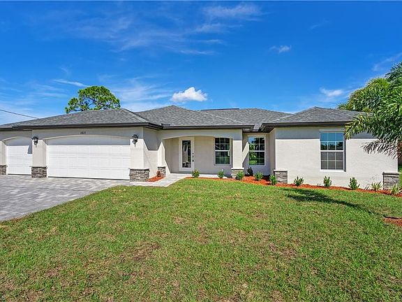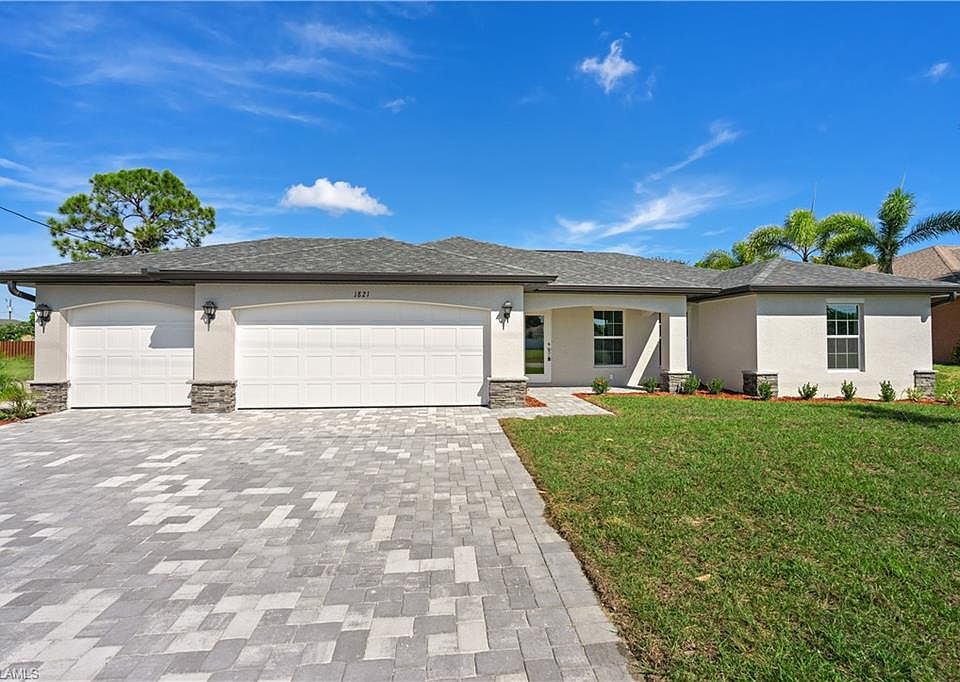 New construction! Come see our "Pineland" model. Beautiful 3 bedroom, 2 Bath, 3 Car Garage home in desirable SW Cape. Close to Shopping and Dining. Home comes with a 10 yr full structural warranty and a full 1 yr warranty! Features : Open floor plan with cathedral ceilings, Center island kitchen, spacious living room leads to large covered lanai to enjoy the SW Florida lifestyle! CBS constructions, Under truss lanai, Lenox 14 Seer high efficiency AC system, Moen plumbing fixtures, dimensional shingles, PGT Low E Insulated windows, wood cabinets with soft close, Granite in kitchen and bathrooms, Stainless steel appliance package, colonial style raised panel doors, Electric garage door opener, 18" tile flooring in main living areas , stone accents on front elevation of the home, 3 zone irrigation system, upgraded landscape package, epoxy coated garage floors. You will not find another new construction home at this price with this quality of construction! Pictures shown are of a completed home and features may differ. Ask sales representative about closing costs incentives.