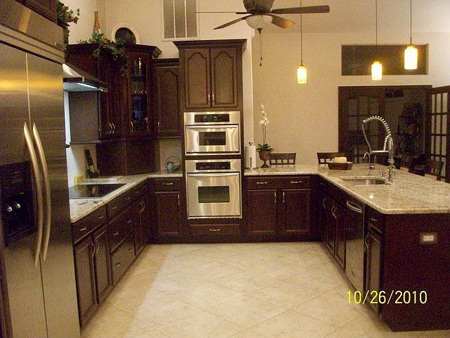3 Bedroom and Den Beautiful and all furnished home located on a fresh water Canal. New Saltwater Pool with large all Travertine tiled Lanai.\r\nDark Walnut Kitchen cabinets with granite counters and stainless steel appliances. Main area and Office tiled with Italian Porcelain Tile. Lots of plant shelves and build-ins in the spacious Great Room and Kitchen.\r\nVery unique Gas Log Fireplace and Surround sound in Great Room.\r\nMaster Bedroom with Tray Ceiling, Master Bath with Spa Tub, large double Rain dance Shower heads in large Shower, vessel sinks and granite counters on vanities.\r\n2 large Guest rooms, Guest Bath with 2 vessel sinks and granite counters.\r\nUpgraded faucets, Fans and Light Fixtures throughout House Brokered And Advertised By: American Brokers Realty Group Listing Agent: Lieselotte K Clacher