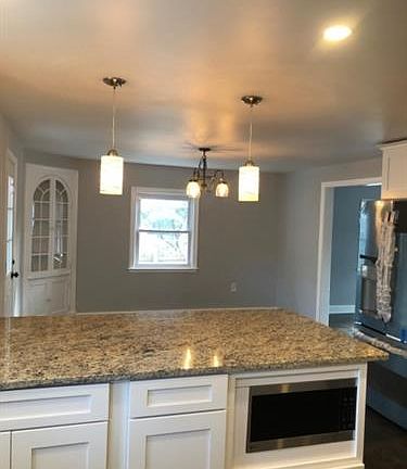 Beautifully renovated 4 bedroom home. Features spacious open concept kitchen with stainless steel appliances. Hardwood floors throughout. with a spacious back yard