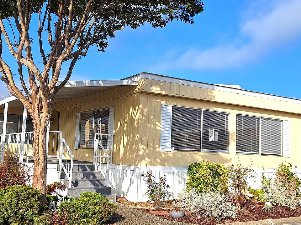 Move-in Ready. Lovely 2 Bedroom, 2 Bathroom large 1392 sq ft Mobile Home located in desirable Senior community - Mission Bay in San Leandro. Centrally located to shopping, medical, public transportation, and easy access to freeways. Close to walking and biking trails alongside San Francisco's Bay shoreline. Walk to Clubhouse. Mission Bay offers a heated swimming pool, outdoor hot tub, separate his and her's saunas, separate his and her's exercise rooms and equipment, billiards, card room, modest courtesy library, laundry, and clubhouse. Social activities offered via the Men and Women's Club. Loaded - includes blt-in oven, new refrigerator, new stacked washer/dryer, and 2 sheds. Boasts laminate flooring, whole-house painted, ceiling upgraded puck-lighting, marble counter-top in bathroom, skylight, solar tubes, roof recoated March 2024, and new bedroom window coverings, and more.