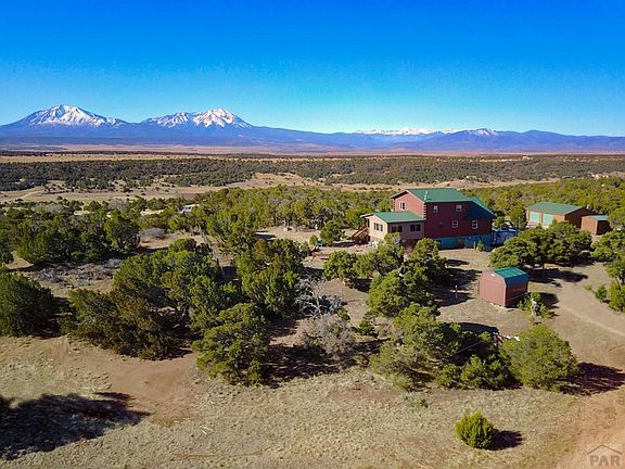 When you think of ''spectacular mountain views'' these are the ones you dream about! Welcome home ,to this beautiful custom built log style home offering 3500+ sq ft of living space nestled in southern Colorado. Situated on nearly 6 acres and bordering a greenbelt in the desirable Navajo subdivision offering plenty of room for privacy and space. Truly experience the best of both worlds with the lofty mountain views along with seclusion from the retreat atmosphere of this home and property. The owners have tastefully added expansive covered and enclosed Trex deck space to take advantage of the Spanish Peaks and Sangre De Cristo Vistas and over 300 days of Colorado sunshine per year. Enjoy the bonus 11x16 sunroom with a steaming mug of coffee or get lost in your favorite page turner. Additional 50 and 30 amp hook up and water available for RVs will make hosting company a breeze. Enjoy the sought after Colorado lifestyle without having to compromise on access to nearby amenities. Conveniently located within a 15 minute drive to Walsenburg and La Veta where you will find amenities, golf courses and entertainment. You won't have any lack of space for all of your hobbies and toys with the nice oversized 2 car garage and two additional well kept 10x12 storage sheds. The graveled driveway and parking area are a few bonus touches to make life even easier.Minutes away from Lathrop State Park and the iconic Highway of Legends.t just doesn't get any better then this!