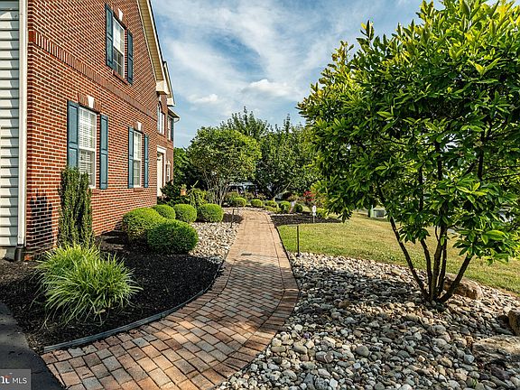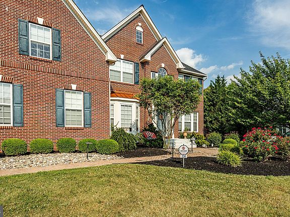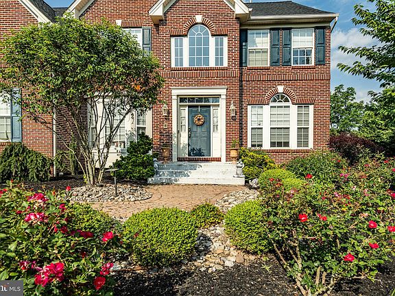 This stately luxurious brick home, located in the desirable High Meadow development, built by the Heritage Homes Group, has many amenities and upgrades found in a model home. The exterior has elegant landscaping and a stone paved walkway, new hardscaped back patio and play yard on almost an acre of ground. Walk in to a grand 2 story foyer with angled hardwood flooring, throughout the main level, leading into an open floor plan. The first floor features 9 foot ceilings throughout, a formal dining room, den and an updated kitchen with solarium. The 2 story family room has a spectacular wall of windows and skylights that provide an abundance of natural light. The family room has a floor to ceiling stone fireplace, tray ceiling and crown moldings throughout. Home features a double staircase leading to a beautiful master bedroom suite with his and her closets, changing area and master bathroom. Upstairs has wall to wall carpet and 3 additional nice size bedrooms, a full bath and separate laundry room. The lower level has a built in bar, and plenty of room for gym equipment, powder room and walk-out sliders. The downstairs also offers a fabulous theater room with newer carpet for the family to enjoy movie night.