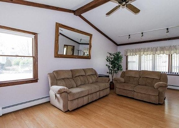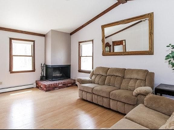 Well located! Close to town center and schools. Great layout! Vaulted Living room with corner fireplace abuts the Kitchen / Dining room. An adjacent deck affords ample space for grilling and sitting outdoors. 3 large bedrooms, with an en-suite bath in the master. 2 full baths In the main house. The great room / playroom is nicely finished with walkout access to the back yard. There is a one bedroom in-law Apartment over 2 car extended garage. Home has city water, septic, Gas heat and hot water. Great rental property. Live on one side rent the other side to help pay mortgage.