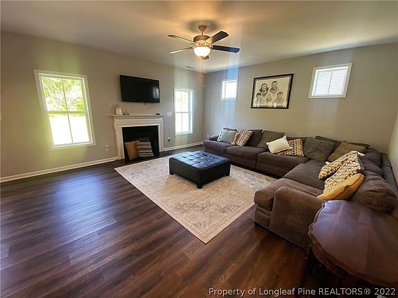 One year old home on half acre lot in Harnett County nestled in a quiet cul-de-sac. This 4 bedroom home has a downstairs office with closet that could be used as a 5th bedroom. There is also a media room upstairs and three full baths. Gorgeous Kitchen with gray cabinets, granite counter tops, subway tile backsplash, island with sink, stainless front appliances and a corner step in pantry. Large open floor plan with Luxury vinyl plank flooring. Large living room with gas fireplace (logs never used). Ideal for entertaining or having the family all together. Spacious master suite with walk in closet, dual vanities, garden tub and a 5'shower. Laundry room is upstairs with bedroom. Covered back patio to relax in the huge back yard. Short Commute to Fort BraddHurry! this won't last long!