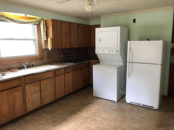 Very nice ranch style home that features two large bedrooms with hard wood flooring and big closets, The living room is large with a beautiful fireplace and book shelves on either side. The large kitchen serves as an eat in kitchen and first laundry is a bonus. The bathroom is updated with modern fixtures. The basement is open and is great for storage or to finish off for additional living space. Exterior features include replacement windows, newer roof, one car detached garage with a covered patio, flat rear yard and a great view. Easy to show call today