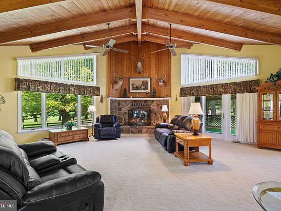 This exceptional estate offers a perfect blend of elegance, functionality, and rural charm. Situated in the middle of 9+ acres of rolling pasture land, this sprawling Rancher is a dream come true for those seeking a place to bring their horses and livestock! The home boasts a spacious family room with a high vaulted wood ceiling and stone fireplace, creating a cozy yet open atmosphere. The kitchen features an island with a breakfast bar, stainless steel appliances, a cooktop plus wall oven, and a large picture window that frames lovely views of the pastures and barns. A walk-in pantry with a skylight, a separate breakfast area, plus a formal dining room provide ample space for kitchen storage, prep, and sit-down meals. Each room is bathed in natural light from large windows, enhancing the home's airy feel. The primary suite is a luxurious retreat, offering a walk-in closet and an extra-large bathroom with a shower and two sinks. The enclosed porch/sunroom with utility sink leads to a greenhouse, perfect for flower enthusiasts or those wanting to grow their own fruits and vegetables. The spacious screened-in porch and rear deck are great for outdoor relaxation or for entertaining guests. Extras include a new roof, a spacious laundry room, a warm propane fireplace, built-in cabinets and desk area in the dining room, multiple ceiling fans, storm doors, casement windows, flood lights, paved walking paths, an oversized two car garage with crawlspace access and attic pull-down stairs, and so much more! Designed for equestrian lovers and homesteaders alike, this property features multiple fenced pasture fields adorned with mature trees, a two-stall horse stable/barn with a feed/tack room, a turnout shed, and another barn/shed. The multi-purpose outbuilding with a finished 15'x11' room could serve as a workshop, studio, office, gym, storage room, etc. The options are limitless!