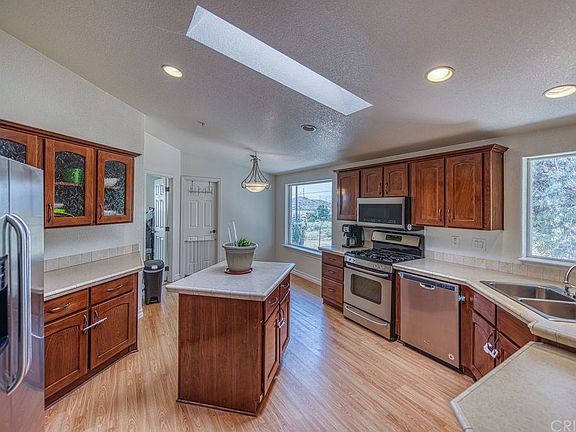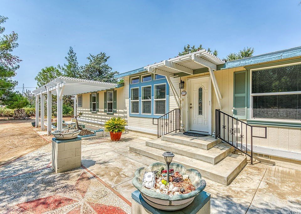 Unique, nearly 1 full acre potential horse property with beautiful home set up for multi family living with several additional outbuildings including a man cave/she shack, wine cellar and spa house. The house includes 3 bedrooms plus a den/retreat, spacious kitchen with cherry wood cabinets, upgraded counters, stainless steal appliances and a kitchen island. The home has been divided into two living quarters all with access to the kitchen. Large master bath has dual sinks and a deep soaking tub. Separate laundry room with front loading washer and dryer. Outside you'll find a resort like setting with courtyard, spa house with enclosed jacuzzi, stone fireplace, a stone wine cellar room, and a cozy, metal covered breezeway patio between the home and the 2 car detached drive thru garage. The property also boasts a children's campsite area with a teepee and fire pit. The upper pad of property has room for horses and other structures. There is a highly reliable water well with new pump under warranty and beautiful mature trees throughout the property all fed by a grey water system. You must see this unique property in person to appreciate just all it has to offer.