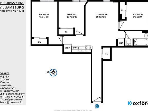 **Available September 5** Located in the heart of Williamsburg, this renovated 3-bedroom apartment features hardwood flooring and a washer & dryer in unit! As you make your way through the spacious hallway, the southern exposure greets you with an abundance of direct sunlight throughout the day. Enjoy incredible views of the city skyline from every room. The modern kitchen is equipped with stainless steel appliances, including a dishwasher, making meal preparation and clean up a breeze. Heat and water are included. Pets are welcome! Please note that this unit is on the 5th floor of a walkup building. Conveniently located 3 blocks from the J, M trains and 2 blocks from the G train, the property is situated around everything there is to love about Brooklyn while still being a short train ride to Manhattan (2 stops to Manhattan on the J, M). The neighborhood features a 24 hour Walgreens, groceries, convenience stores and a wide variety of restaurants and take-out/delivery options. Heat and water are included. Gas and electricity are paid separately. Pets are allowed on a case by case basis!