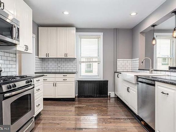 Enter the home into a spacious living room with natural light from the large bay window overlooking an inviting front porch. On the first floor there is an open floor plan featuring a living room and dining area, and the kitchen is complete with fresh cabinetry, farm sink, white tile subway backsplash, gorgeous granite counters and breakfast bar and stainless steel appliances, hardwood flooring, and pendant lighting. A convenient full bathroom and laundry room make up the balance of the first floor and allow access to the rear patio, which is perfect for outdoor dining, and relaxing. The second level of this house is features 3 spacious bedrooms with ample closet space and a full hall bathroom. The 3rd level has two additional bedrooms that could be combined into 1 space or used individually. The 200-block of W 3rd Ave is conveniently located within walking distance to the all of the fantastic local restaurants and nightlife that Conshohocken has to offer. It is also conveniently located near to Plymouth Meeting, King of Prussia, and Chestnut Hill and offers access to multiple grocery stores and malls. Having I-76, the PA Turnpike, and Route 476 close by make commuting a breeze, or if you prefer the train or bus, the Conshohocken and Spring Mill regional rail train stations and other convenient public transit are all just a short walk away. This place is perfect for a couple looking for a ton of extra space or 3-4 occupants. Central Air/Heat included!! Ample street parking open in front of the house, no permit required. Tenant pays for all utilities. 1 year lease, tenant pays all utilities (water, sewer, PECO, internet, trash, etc.)