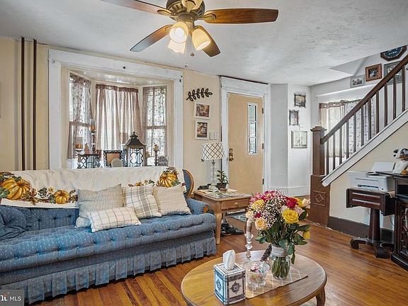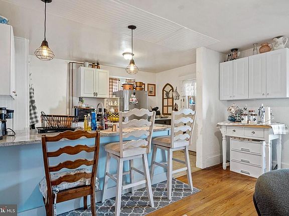 This adorable, white block home is cute as a button and offers plenty of space and updates, has been freshly painted throughout and is move-in ready! There are hardwoods in the inviting living room and dining room, the updated kitchen offers granite counters and new cabinetry with another room off from the kitchen where there is currently an extra refrigerator. Upstairs you will find 3 spacious, carpeted bedrooms, a full bath and a porch for relaxing and getting fresh air. There is a nice yard that leads to the oversized 2 car garage for added parking or storage. This home is a great value with awesome space, and it is convenient to everything!