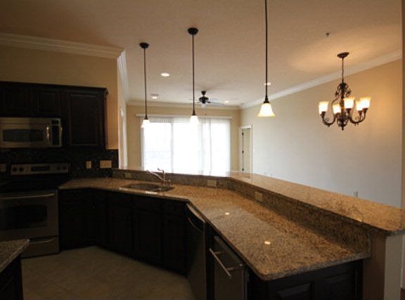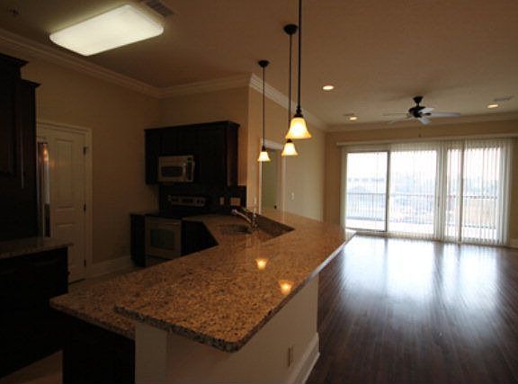 Luxury condos one block from Toomers. This is a 2 BR suite with 1416 sqft. Hardwood flooring in the hall and Great Room, stainless steel appliances, ice maker, washer/dryer, granite countertops in kitchen and baths, tile shower, covered patio w/ tile floor and storage closet. Crown moulding throughout. Views of campus. See pix for floorplan. One underground reserved parking space per bedrooom.