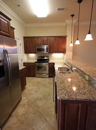 Luxury condos one block from Toomers. This is a LG 2 BR unit with 1329 sqft. Hardwoods in hall and Great Room, tile in kitchen, stainless steel appliances, ice maker, washer/dryer, granite countertops in kitchen and baths, tile shower, covered patio w/ tile floor and storage closet. Crown moulding throughout. Views of campus. See pix for floorplan. One underground reserved parking space per bedrooom.