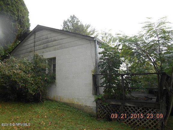 A little TLC and some repair can make a comfortable 3 bedroom home. Just off Route 100 between Pearisburg & Dublin. Solid cement block home. Hot water heater and oil furnace newer. Hardwood floors. Replacement windows would make a hugh difference. Has old metal sink cabinet. Large front porch w/ beautiful mountain view. Scenic yard sloping uphill with walnut trees. Great views. Shared community well with 5 homes. Tree shaded. Pleasant country feel. Detached block shed. Lok box on back door. Vacant for several years. Musty!! Selling ''AS IS''. Survey attached Bring All Offers!!