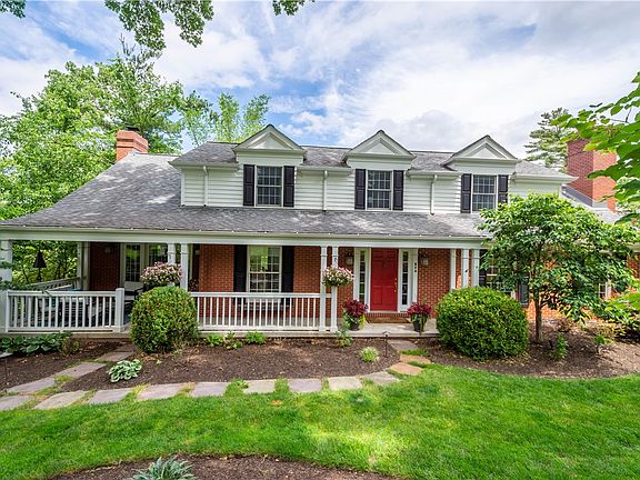 This extraordinary home located in an ultra private, lush 1.7 acres in Upper St Clair is the epitome of a movie estate where you can host family & friends. Whether you want to enjoy coffee in the large covered front porch or have wine in the flagstone patio you’ll admire the serene, mature grounds. Inside you’ll love the gleaming hardwoods, natural light that abounds & flowing floorplan that begs you to entertain, relax & enjoy life. Whether you are in the large kitchen featuring Viking range & warming drawer overlooking the huge living room w/ wet bar, hosting holiday meals in the grand dining room or reading in living room you’ll love living here. Working from home? There are 2 home offices w/ views of your putting green & back yard.When it’s time to rest the owners suite features a walk-in closet & Roman shower. 4 secondary bedrooms all feature walk-in closets & share a gorgeous bath.The lower level game room, full bath & laundry room provide ample space to unwind in your new home!