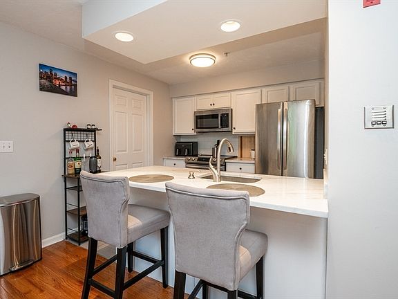 Step into this well-maintained 2 bedroom 1 bath condo conveniently located and in a professionally managed association. This 2nd floor unit boasts an updated open concept kitchen with stainless steel appliances, quartz countertops, and a breakfast bar. A private balcony offers a seamless transition to outdoor space and brings natural light throughout the unit. In addition to the plentiful sized bedrooms and closets, an updated bathroom, hardwood floors, in-unit laundry, central air, private deeded parking space, and storage unit make this a property you won’t want to overlook. An extra bonus includes heat in the condo fee. Live close to commuter routes, a short distance to downtown Wakefield and Lake Quannapowitt, and a plethora of convenient local amenities.