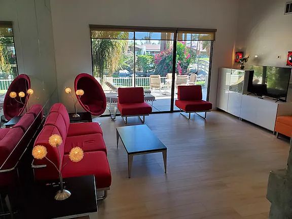 Luxurious Condominium in a gated Golf community Luxurious living surrounded by gorgeous park-like landscaping, fountains, waterfalls, and panoramic Santa Rosa Mountain views. This home features beautiful light throughout, and serene and relaxing water views from the living, dining, kitchen, and spacious back patio with a built-in BBQ. Perfect for entertaining and enjoying life. 2184 Sqf of living space with three bedrooms, each with an ensuite bathroom, a guest bathroom, a fully equipped kitchen, a laundry room with a washer and dryer, and an office . The home has a security system and two-car garage and a golf cart garage. The community has a 27-hole championship golf course, 44 pools, spas, tennis, pickle ball, bocce ball, a fitness center with Zumba classes, and more. Clubhouse, casual and formal dining all inside the 24-Hour security gated community.HOA rules require tenants to pay for the use of the fitness center, tennis, bocce ball, and pickleball. the golf course is not available for tenants. The landlord shall be responsible for payment of water, sewer, and trash collection services throughout the lease term. The tenant shall be responsible for all electricity, natural gas, internet, and cable television services, ensuring timely payment to avoid service interruption. Smoking of any kind, including cigarettes, cigars, pipes, and electronic cigarettes, is strictly prohibited inside the rental unit and common areas. The maximum occupancy for this property is limited to four (4) persons at any given time, and any guests staying longer than fourteen (14) consecutive days must receive prior written approval from the landlord. Violation of these terms may result in immediate lease termination and forfeiture of security deposit.