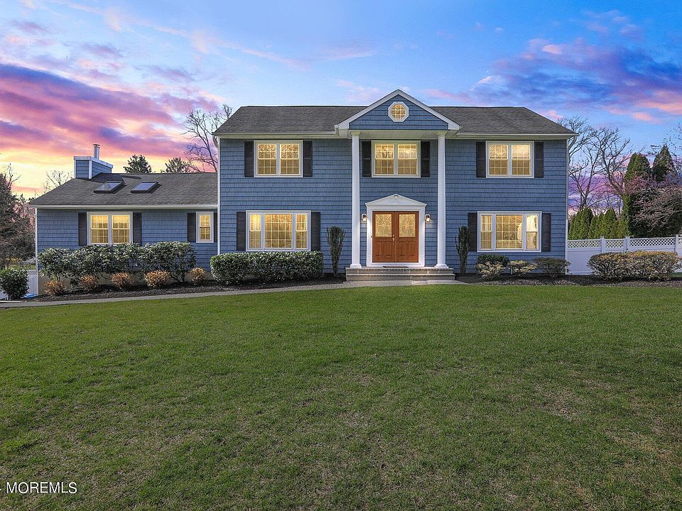 This 4-bed, 2.5 bath Center Hall Colonial offers space, comfort, & convenience. Hardwood floors adorn the living, dining, and office area, with lovely French doors. The master ensuite features a full bath with a shower & walk-in closet. Home also has 3 other generous size bedrooms. Enjoy the ease of your central vac system. Newer AC unit and brand new hot water heater. Great room with Vaulted ceilings, skylights & a Wood burning fireplace for those chilly nights. 2 sets of sliders lead to the Trex deck overlooking your Tranquil property, with an in-ground saltwater pool, and trampoline cover, installed in 2018. Close to NYC transportation, restaurants, schools, shopping, Beaches & the GSP