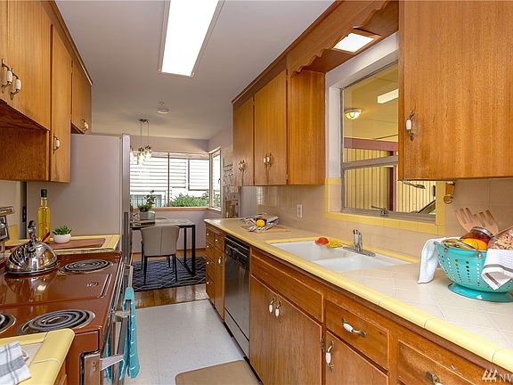 Mid-century featuring 4 beds, 2 Baths, hardwoods w/ huge daylight basement, waiting for your personal touch! Bright & spacious Living Rm w/fireplace, expansive deck overlooking private, serene backyard, mature trees & territorial views. Kitchen w/Dining Area, add Family Rm w/ fireplace, patio & MIL an option w/ sep entrance. Carport & off street pking & AC. Quiet part of 23rd Ave. Walk to Light Rail, Amazon Shuttle, shopping, restaurants, schools & parks. I-90, I-5, DT & stadiums mins away.