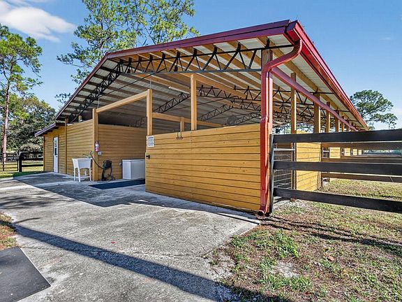The entire 5-acre parcel offers a peaceful, green setting with abundant trees, natural privacy buffers, open grassy areas, and thoughtful pathways connecting the home, cottage, barn, and paddocks. A stocked pond creates a scenic backdrop from the screened patio. Multiple gates and wide driveways accommodate horse trailers and deliveries, and two RV hookups allow additional support housing if needed. Although private, the property sits close to major equestrian venues, training centers, feed stores, veterinary services, making it an ideal seasonal base or annual home for riders.