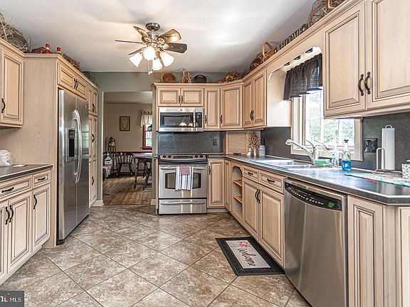 Immaculate colonial nestled on over five acres in bucolic Upper Salford Twp with only one owner! Minutes from 113, 73, 29, Godshall Rd, Cowpath Rd, Dock Academy, Indian Valley Country Club, & Franconia Community Park. Step onto the covered front porch and into the ceramic tile foyer leading to the formal living room, complete with chair rail, wood trim, and huge windows! The renovated kitchen boasts gorgeous paneled cabinets with pull-out drawers, stainless steel appliances, tiled flooring, upgraded ceiling fan, and cozy breakfast room overlooking your expansive yard backing up to lush woods. The expansive great room room with wall-to-wall carpeting features both a living room with dramatic floor-to-ceiling stone fireplace and media room with wood-burning stove. Don't forget the covered patio, newer roof, and oversized 2-car garage plus 8-10 car parking! Plenty of room to entertain! The enormous, walk-out basement is just waiting to be finished and has a pool table already included. Three of the spacious bedrooms have hardwood floors and large closets, while the 4th has plush carpeting! Award-winning Souderton School District!