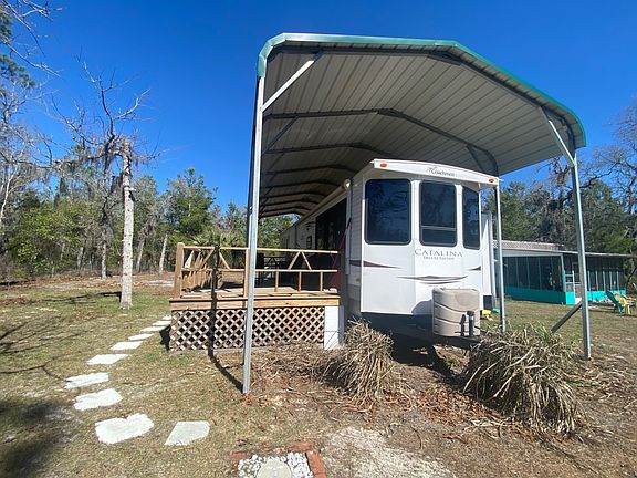 Come check out this wonderful coastal retreat that can help pay you back...or grab your friends and split the cost for an economical Florida get away.. This unique opportunity boast not one but TWO super clean and well maintained RV's. Both of the RVs have newer flooring and are completely furnished. They both have been covered with shelters that help protect the RVs from the weather and summer sun. They are both ready for immediate occupancy just in time for upcoming summer fun. Someone just mention fun..?...All this is located within minutes to the Gulf of Mexico with excellent inshore and off shore fishing, crabbing, scalloping or kayaking. Like to hunt deer, turkey or wild boar? Great hunting areas also within minutes from this high and dry location. This unique Florida retreat comes with a Coachman Catalina 2013 39 ft RV . PLUS a Franklin 1994 40' RV. The Catalina has a nice wooden deck and ramp, slide out for extra living space, furnished with stove large refrigerator, combined living, dining and kitchen area. One bedroom, one bath, central heat and air with room for fold out sleeper in living area. The second one a Franklin RV has one bedroom, one large bath, with combined dining area and living with fold out sofa. Extra cabinets for plenty of storage throughout. baseboard heat and window units. For extra gathering space just step outside into the large concrete floored screened in porch. There you can relax and spin "Catch of the day" tales. Outside host large out building with power, large open shelter ideal for boat storage with fish cleaning area , extra storage and washer area, room to add additional 2 more RVs hook ups with county approval and permitting of course, property is completely fenced , cute water pump house and pitcher hand pump, the entry is enhanced with lanterns on a timer and gas like flicker adds charm to welcome you home at night. Hurry summer is coming fast...don't miss the wonderful opportunity.