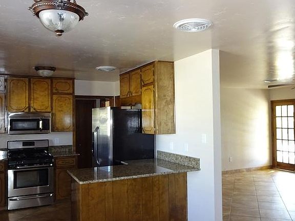 Kitchen includes stainless steel stove, refrigerator, dishwasher and microwave. Reverse Osmosis. Granite countertops. Ceramic tile flooring throughout. Living room has fireplace. 2 car garage. Refrigerated air. Shed. 1422 SQFT. AVAILABLE 01-14-2020