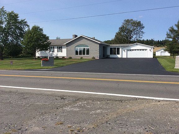 ROOM FOR EXTRA BEDROOM & BATHROOM if needed! Dream kitchen w/everything on your wish list, high end stainless appliances, dining counter/dining area open to living room w/massive fireplace w/wood stove insert, tiled floor over in-floor heat, enclosed breezeway between home/breezeway/two car garage plus another storage garage in back, huge master bedroom, huge size bathroom w/whirlpool tub, separate shower, 2nd bedroom on 1st floor, laundry rm, large deck, basement w/bulkhead, close to snowmobile/ATV trails.