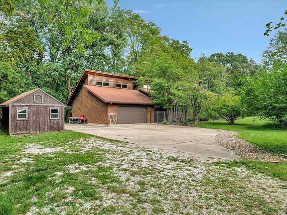This contemporary 1 1/2 story home is located in a quiet area along the banks of the Salt Fork River. It sits back from the country road on a private lane and features 3 bedrooms, 2.5 baths, and an oversized 2-car garage with a loft. The living room has a vaulted ceiling and a wood-burning stove, providing a cozy atmosphere. Additionally, there's an outbuilding garage for storage or a workshop, perfect for hobbyists or tradesmen. The property spans six-plus acres, with some areas covered by heavy woodlands. Please note that this property is being sold in an "as-is" condition, but it offers immediate possession.