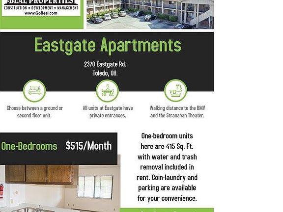 This 680 square foot townhome home has 1 bedrooms and 1.0 bathrooms. This home is located at 2340 Eastgate Rd, Toledo, OH 43614.