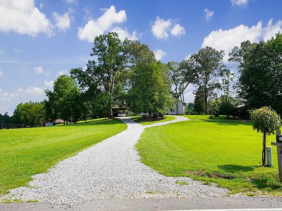 *BUYER WALKED-Back on the market* Enjoy the farm life here on 17.7 acres! Large stocked pond and property going to center of creek on back side. Long beautiful road frontage and acres of open pasture with small portion fenced. You find metal barn, several garage/ shop buildings, chicken coup, large covered carport at home side for RV-boat-vehicles. The 4BR-2BA home has had renovation areas along the way and allows space to roam. Kitchen renovation with beautiful kraft maid cabinetry-some pull out shelves, breakfast bar dividing to dining area. The master suite is the upper level with 3 bedrooms on the main level. Partial storage basement as well. Gas logs unit in gathering room yet propane tank has been removed. Public water for home and well water from animals or garden! Beautiful setting, county area yet minutes back to town. Mudroom/ laundry room at the side door location. Property in Greenbelt tax program an Buyer to recertify. New survey on file and markers in place.