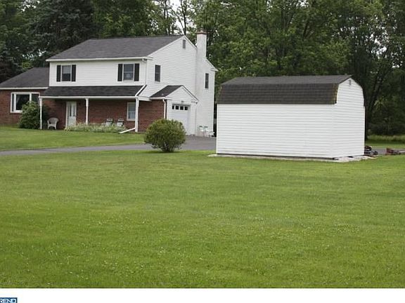 Welcome to this well maintained move-in condition colonial home situated on just under 3 acres! Inside, this lovely home features a very large family room with brick fireplace with wood burning insert leading outside to a patio. Electrical outlet above the Fireplace allows for placement of a TV. With the additional space of the Living and Dining Rooms this is an ideal home for family and friend gatherings. The eat-in Kitchen is complete with plenty of cabinets for storage and counters to work on. The Pantry has pull out shelving for easy and quick access to ingredients or snack foods. Completing the first floor is the powder room. Upstairs boasts the Primary bedroom complete with Full bath with Stall Shower and tiled floor, 2 additional bedrooms and hall bath. All three bedrooms have large closet space with the Primary having 2 separate closets. Ceiling fan/light combination are in all bedrooms, Family Room, Kitchen and Dining Room. Laundry is located in the large open basement. The one-car garage has an electric garage opener and has inside access. Plenty of storage with many closets, open basement, and small alcove accessed in the primary bathroom. Outside, the double door Shed has a large interior for the mower and all tools needed for yard work. Work recently completed between 2019 and 2021: The entire interior has been repainted, new carpeting installed, new ceiling light/fan combo in the Kitchen, New roof on Main Home and Shed, Gutters replaced, Chimney was resurfaced with stucco, caps with new cement, Repaving of the entire Driveway, installation of New Septic tank, and Radon Remediation. The HVAC system was installed in 2012 and there are newer double pane Anderson windows as well. Included with the sale is the 27kw Propane Generac Generator installed in 2014, Stainless Refrigerator, Washer and Dryer. Surrounded by nature, you can feel the experience of Country Style Living. This Home is located close to Green Lane Park & Perkiomen Trail which offers boating, fishing, biking, and hiking. Easy access to 663, 422, Turnpike, and 73. You will not be disappointed! Schedule your viewing Today!!