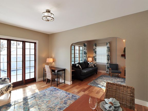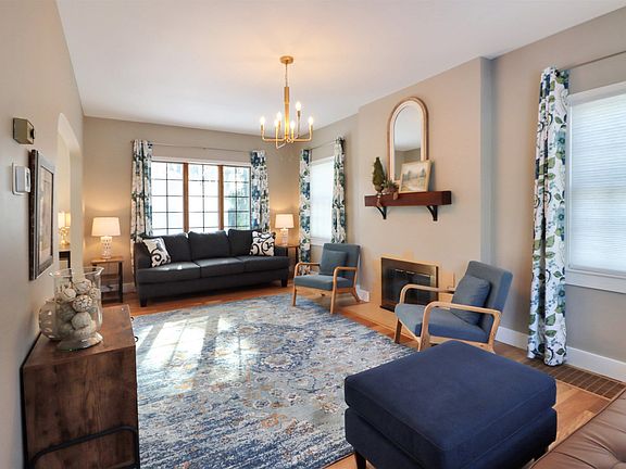 Historic perfection! All the charm with modern upgrades. This charming home has new insulation, drywall, paint, plumbing, electric, furnace, with the central air being only a few months old, flooring, kitchen, bathrooms, appliances, lighting, fixtures, and a half bath that was added to the main floor. All of this with a large, fenced yard and oversized garage. The furnishings are negotiable. Don't miss the opportunity to call this charming property your home. Schedule a showing today!