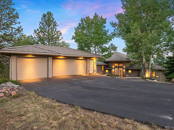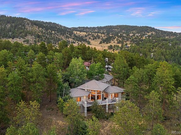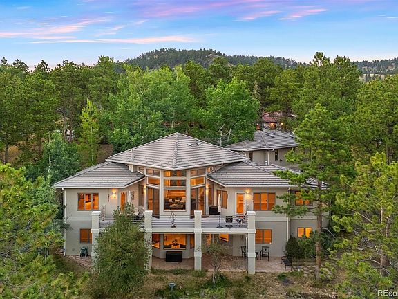 This move-in-ready, mountain contemporary home represents the pinnacle of foothills living. At the end of a quiet cul-de-sac and featuring coveted Southern exposure and views of Mount Blue Sky, this rare main-floor-living home really has it all. The setting is this home's most remarkable feature, a park-like sanctuary where mature aspens and towering pines dot the landscape, and the backyard feels like a private mountain park. From the back deck, you're more likely to see the local Elk herd wandering, or hummingbirds stopping by than a neighbor's home, the strategic positioning ensures complete privacy in a wooded sanctuary. Backing to protected Genesee HOA Open Space and trails, this meticulously maintained custom estate offers breathtaking views of snow-capped peaks, and rolling foothills. The thoughtfully designed layout features four generously proportioned bedrooms and 3.5 luxuriously appointed baths – including a glass shower room - all within 3,590 square feet of perfectly sized and designed living spaces. Every detail reflects exceptional craftsmanship, from the soaring ceilings to the floor-to-ceiling windows that flood the home with natural light. The sunny kitchen features granite countertops, warm wood cabinetry, and professional-grade appliances, along with expansive windows perfectly framing the mountain panorama. The open design & modern features create a unique and inviting home in pristine condition. The Genesee community enhances this nature-centric lifestyle with 1,200 acres of pristine open space, 12 miles of hiking trails, several clubhouses, fitness facilities, swimming pools, tennis and pickleball courts, as well as vibrant social programming. Genesee residents also benefit from public water/sewer and Xfinity internet. Located just 30 minutes from downtown Denver, 45 minutes from DIA, and less than an hour to multiple world-class ski resorts, the location of this home provides a perfect blend of both city and mountain living.
