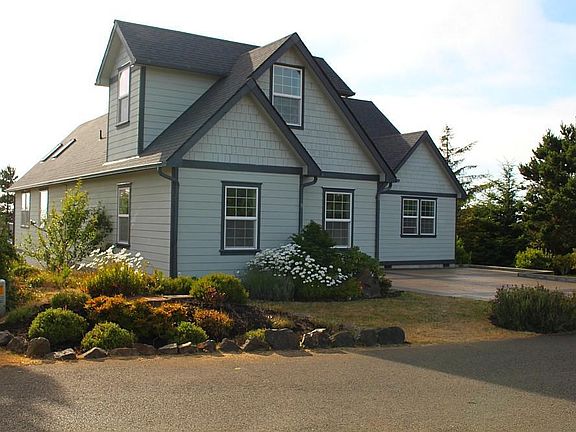 Breathtaking Sun Set views Ocean Peaks thru-out this Custom Crafted Home of 3323sqft 4bdrm/3Ba Plus A fantastic spacious Large Bonus Room or 5th bdrm This Attractive home sits on 1.06 Acres offering Privacy and Elegance at the end off cul-de-sac. Custom Inlaid Tile greets you at the entrance with Hickory hardwood flooring, gourmet kitchen done with Perfection w/slab granite counters, cherry finish cabinets, stainless appliances. Large viewing windows, high ceilings. Full Master Bathroom with jetted tub, Master Suite boast skylights and Large walk in closet. Main living all on the first floor, upstairs hosts a Large Bonus room with surf views, excellent private media room or Hobby/craft area with closet. Adventure to the downstairs for two more bedrooms and privacy. Upscale Lifestyle