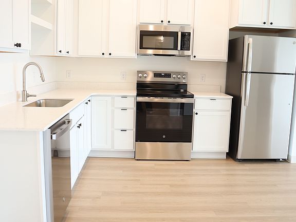Unit Amenities: Dishwasher, Washer & Dryer, Refrigerator, Stove & Oven, Microwave, Blinds, Balcony. Unit Details: Third floor, 2 bedroom, 2 bathroom, vinyl floors, white counters, white cabinets, high ceilings, river views. Tenant is responsible for utilities. Trash services, internet, and snow-removal is included in rent.